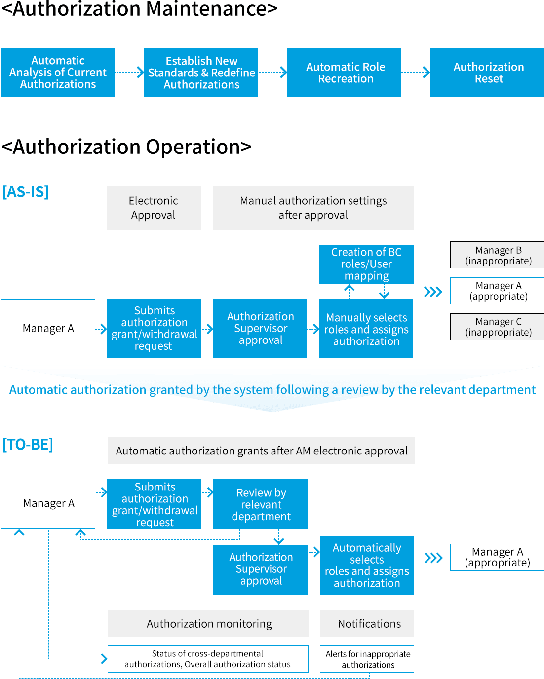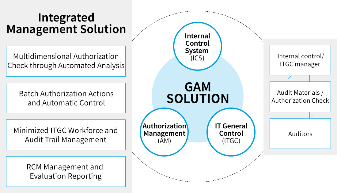 The enterprise solution that strengthens risk management and internal control. With standardized authorization reviews and real-time monitoring, GAM Solution enhances compliance and operational stability across diverse IT environments.