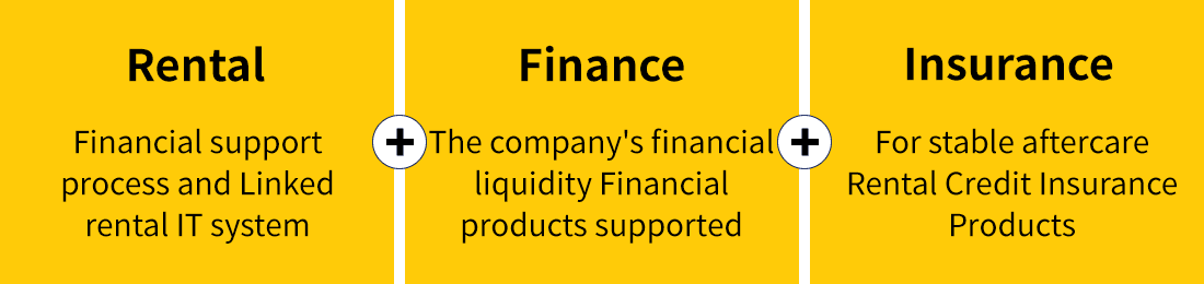 To address the financial challenges in the rental business, Finental provides a system that links the core of rental IT with finance factoring. This ensures smooth rental business operations and financial stability by eliminating delinquency risks through the use of credit insurance.