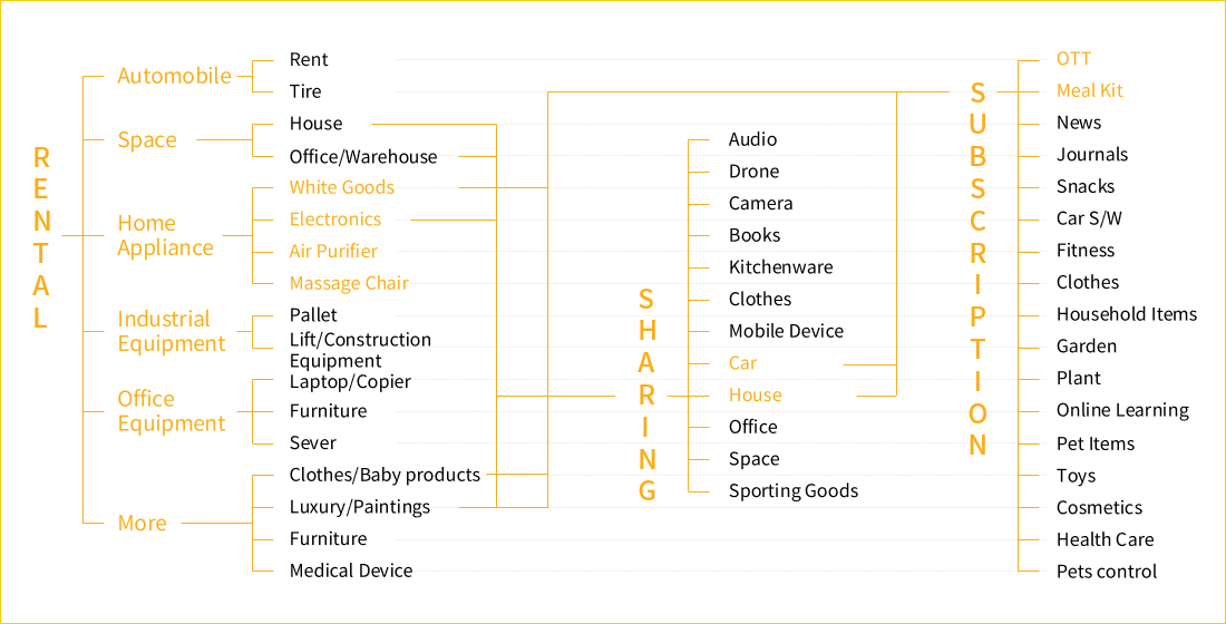 Support for entry into and expansion of rental or subscription business models